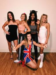 Spice Girl Inspired Last Minute Halloween Costumes Five Women Wooden Floor Whi Spice Girls Costumes Cute Group Halloween Costumes Best Group Halloween Costumes