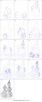 How To Draw A Spooky Haunted House Printable Drawing Sheet By Drawingtutorials101 Com Haunted House Drawing House Drawing For Kids Drawing Sheet