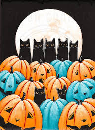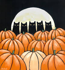 Cats In The Halloween Pumpkin Patch Original Cat Folk Art Acrylic Painting Folk Art Acrylic Paint Halloween Painting Halloween Pumpkin Images