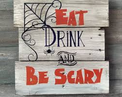 Eat Drink And Be Scary Halloween Sign Halloween Party Sign Funny Halloween Signs Wooden Halloween Signs Halloween Pallet Signs Easy Halloween Decorations