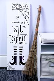 Come In And Sit A Spell Easy Diy Halloween Sign With Canvas And Iron On Join Kim Byers For The F Halloween Signs Diy Easy Diy Halloween Cheap Halloween Diy
