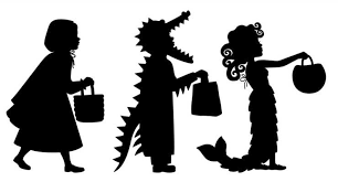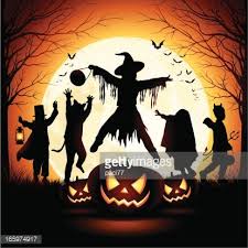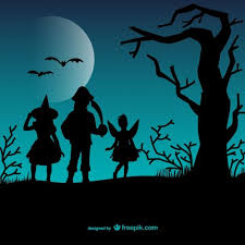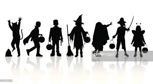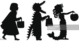 Happy Halloween Silhouette Of Children Dressed In Halloween Fancy Dress To Go Trick Or Treating Template For Halloween Fancy Dress Kids Dress Happy Halloween