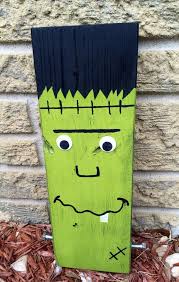 Wooden Frankenstein That I Painted Fall Halloween Crafts Halloween Wood Crafts Scary Halloween Decorations