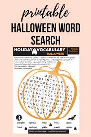 Free Halloween Word Search Printable Worksheet With 30 Halloween Themed Vocabulary Words Perfect For The C Halloween Word Search Halloween Words Word Puzzles