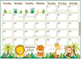 Calendar August 2019 Jungle Planner Printable Cute Planner Etsy As You Like