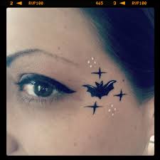 Teeny Tiny Bat Eye Design Face Painting By Glitter Goose Paint Ideas Halloween V Face Painting Halloween Christmas Face Painting Easy Halloween Face Painting